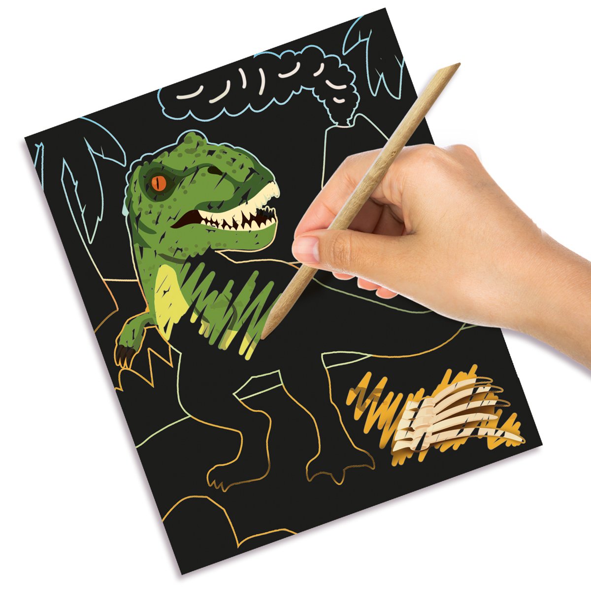 Vyškrabávací obrázky svítící ve tmě dělají škrábání ještě zábavnější. Objevte skryté dinosaury, kteří svítí ve tmě, a oživte svá umělecká díla. S dřevěnou škrabací tužkou mohou děti škrábat vzory, pírka nebo šupiny a objevovat všechny detaily, které se skrývají pod černou vrstvou. Obsah sady: 6 stíracích karet s efektem „svítící ve tmě“, dřevěná škrabací tužka. Podporuje kreativitu a jemnou motoriku. Baleno v krabičce. Rozměry balení: 20 x 15 x 4 cm. Věk: 3+