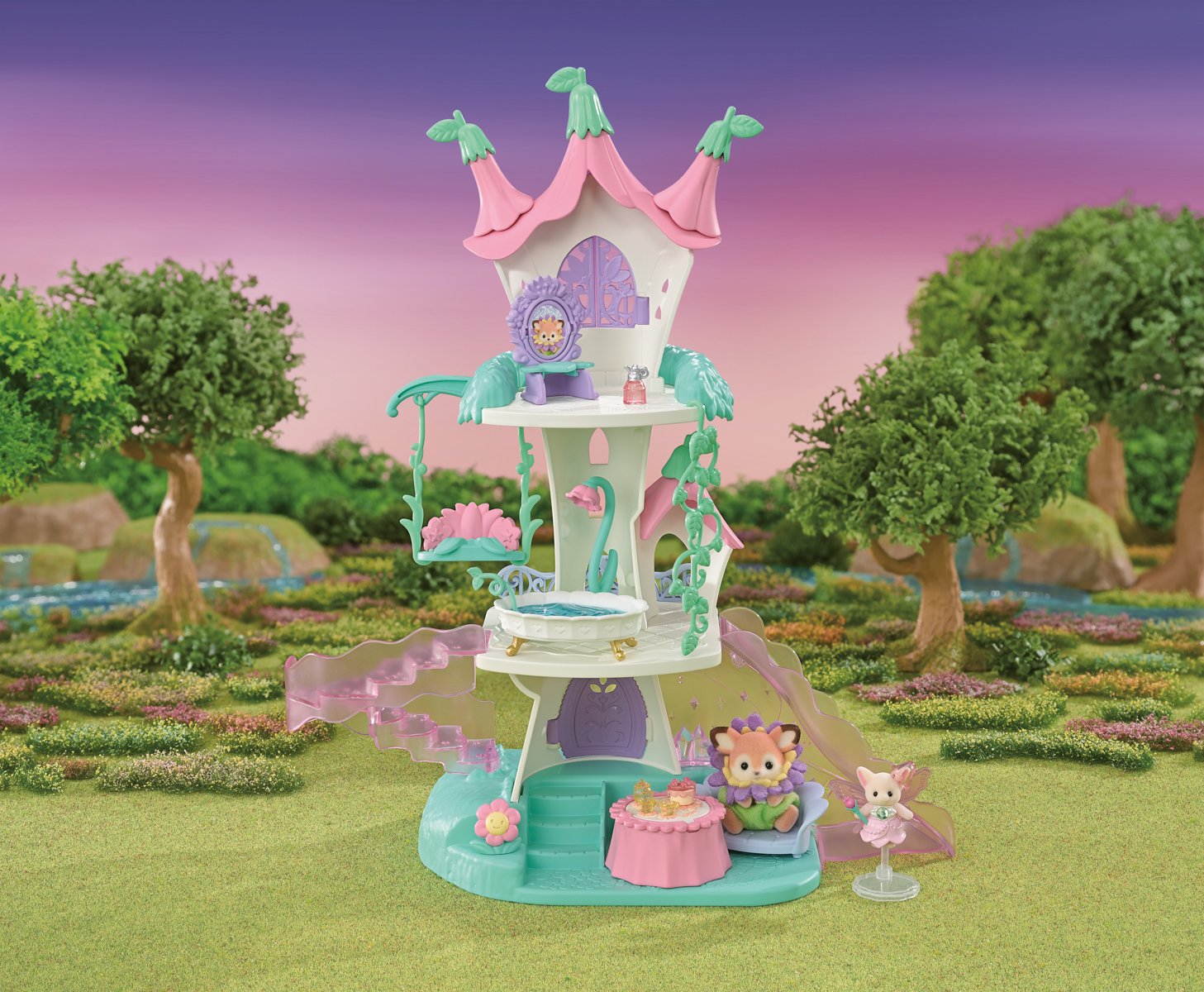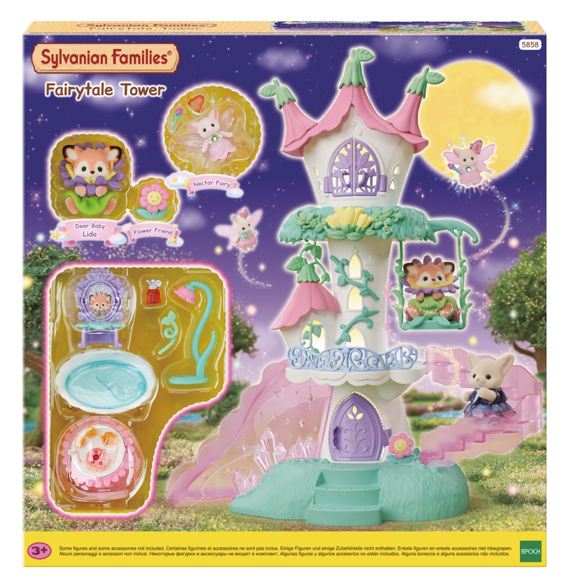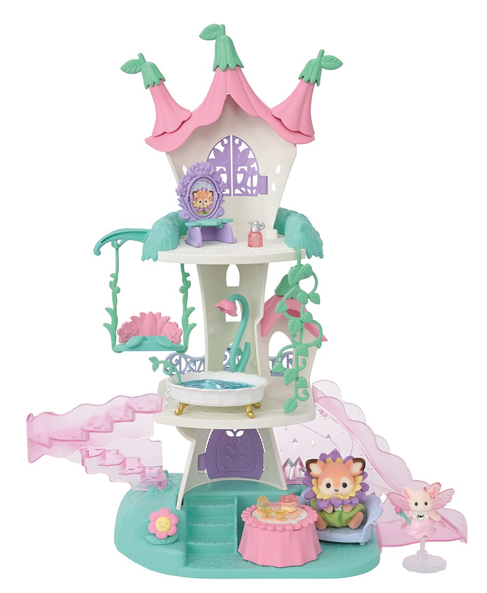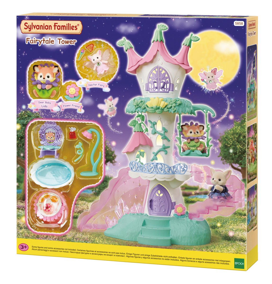 Pohádková věž, kde žije nektarová víla a její květinový kamarád. Součástí je nábytek s květinovou tematikou, jelení miminko v roztomilém květinovém oblečku a kouzelné doplňky. Víla nabízí kouzelnou pohostinnost a lze ji vystavit, jako by létala. Drží kouzelnou hůlku a vždy ji doprovází její květinový kamarád. Věž má spoustu hravých prvků, jako je křišťálová skluzavka, koupelna pro víly nebo květinová houpačka. Doplňky a nábytek: kouzelný čajový stolek, vílí vana, kouzelný toaletní stolek, květinové křesílko, květinová sprcha, parfém. Hračky Sylvanian Families rozvíjejí představivost a povzbuzují děti k hraní rolí. Hra s figurkami rozvíjí kreativitu a učí emocím vytvářením a vyprávěním příběhů založených na každodenních zážitcích a pozorování světa. Hračky se vyznačují nejvyšší kvalitou a výjimečným důrazem na detaily. Figurky Sylvanian Families jsou pokryté měkkým semišem, mají pohyblivé končetiny a hlavu. Oblečení lze z figurek sundat a vyměnit za jiný outfit. Baleno v krabičce. Rozměry věže: 29 x 25,7 x 13,5 cm. Rozměry balení: 29,5 x 29 x 7 cm. Věk: 3+
