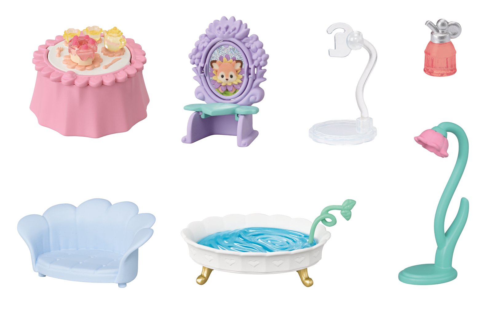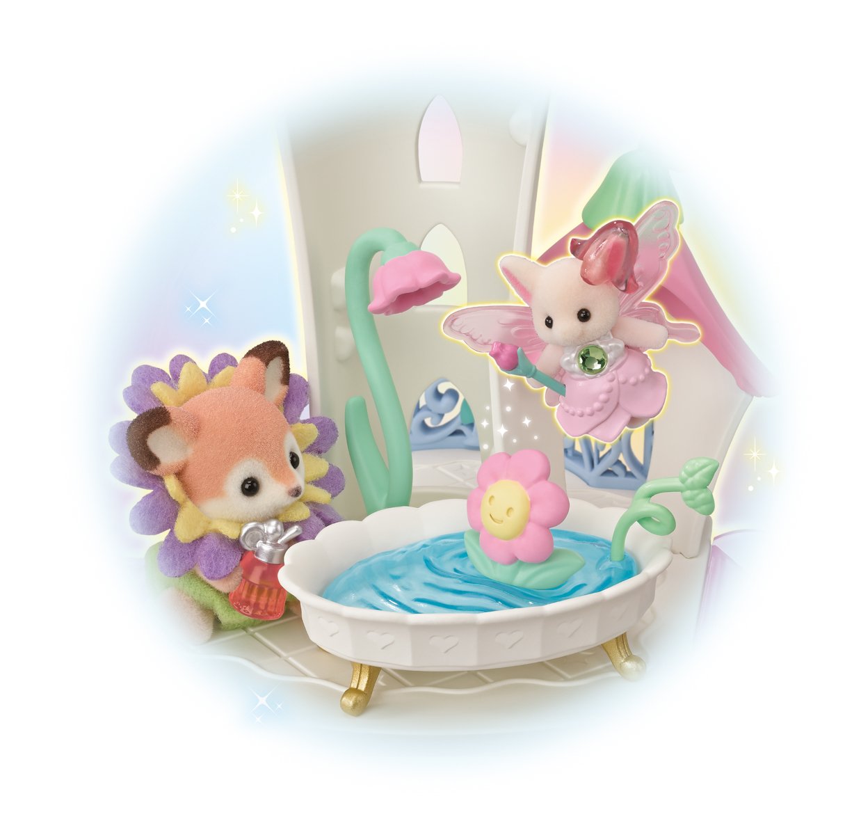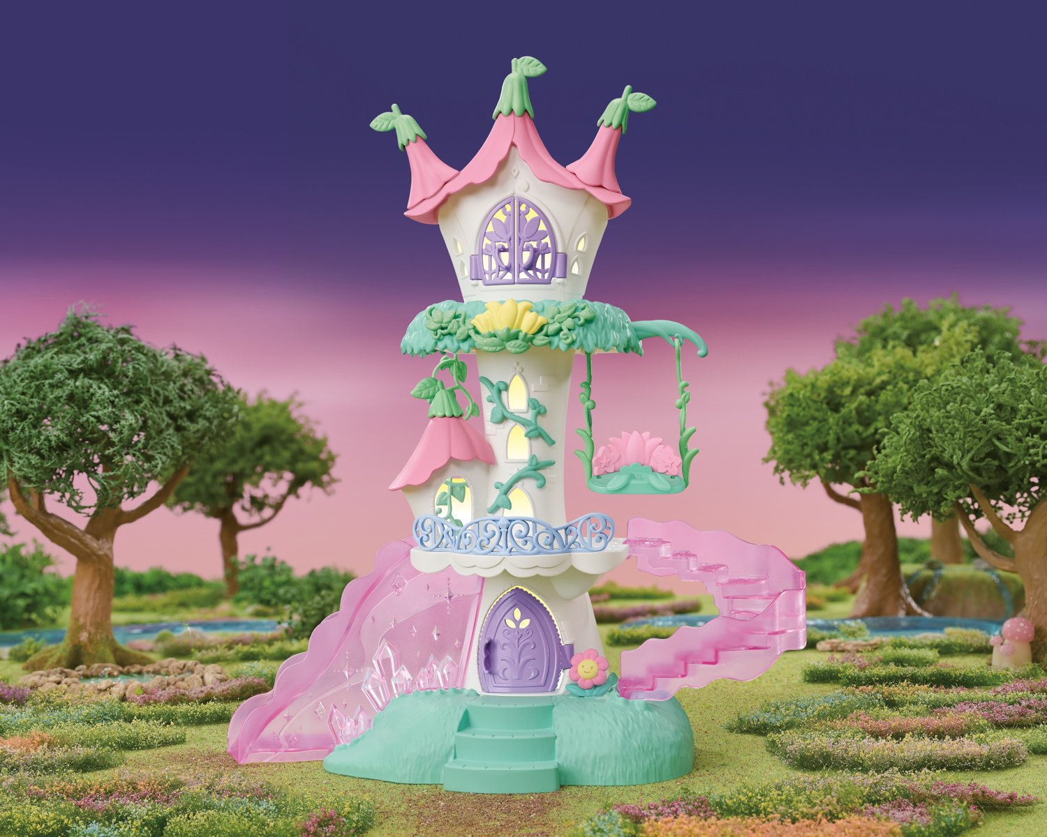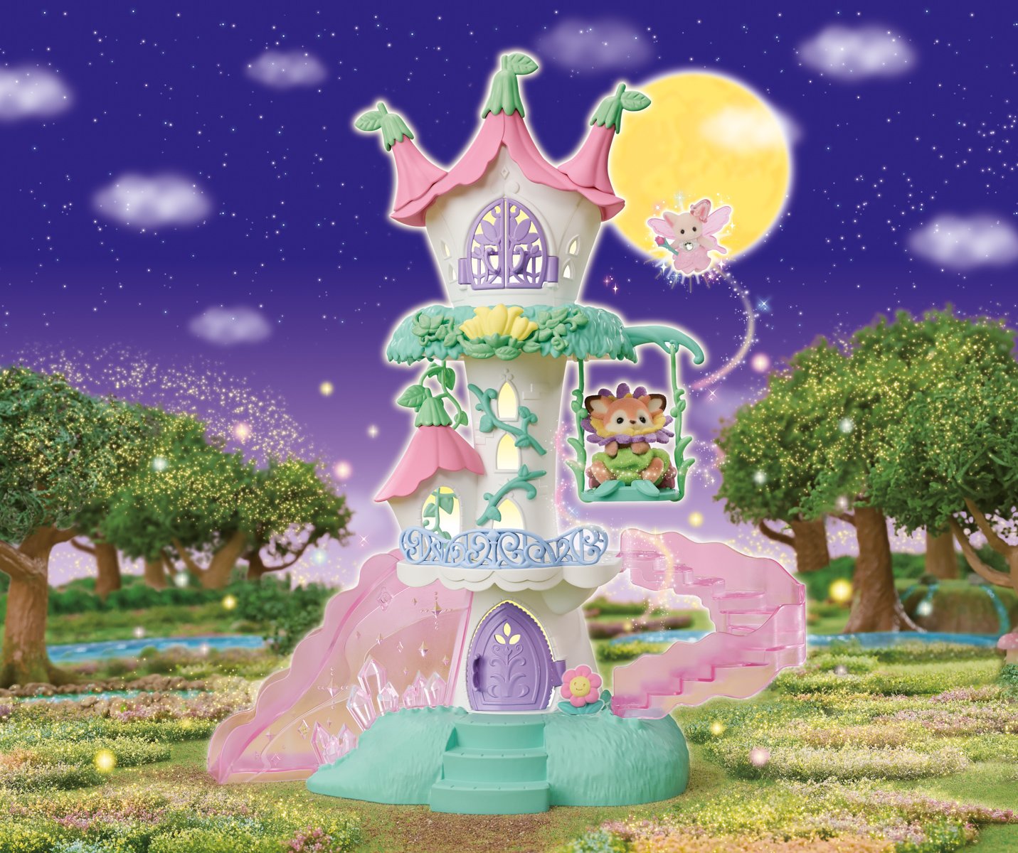 Pohádková věž, kde žije nektarová víla a její květinový kamarád. Součástí je nábytek s květinovou tematikou, jelení miminko v roztomilém květinovém oblečku a kouzelné doplňky. Víla nabízí kouzelnou pohostinnost a lze ji vystavit, jako by létala. Drží kouzelnou hůlku a vždy ji doprovází její květinový kamarád. Věž má spoustu hravých prvků, jako je křišťálová skluzavka, koupelna pro víly nebo květinová houpačka. Doplňky a nábytek: kouzelný čajový stolek, vílí vana, kouzelný toaletní stolek, květinové křesílko, květinová sprcha, parfém. Hračky Sylvanian Families rozvíjejí představivost a povzbuzují děti k hraní rolí. Hra s figurkami rozvíjí kreativitu a učí emocím vytvářením a vyprávěním příběhů založených na každodenních zážitcích a pozorování světa. Hračky se vyznačují nejvyšší kvalitou a výjimečným důrazem na detaily. Figurky Sylvanian Families jsou pokryté měkkým semišem, mají pohyblivé končetiny a hlavu. Oblečení lze z figurek sundat a vyměnit za jiný outfit. Baleno v krabičce. Rozměry věže: 29 x 25,7 x 13,5 cm. Rozměry balení: 29,5 x 29 x 7 cm. Věk: 3+