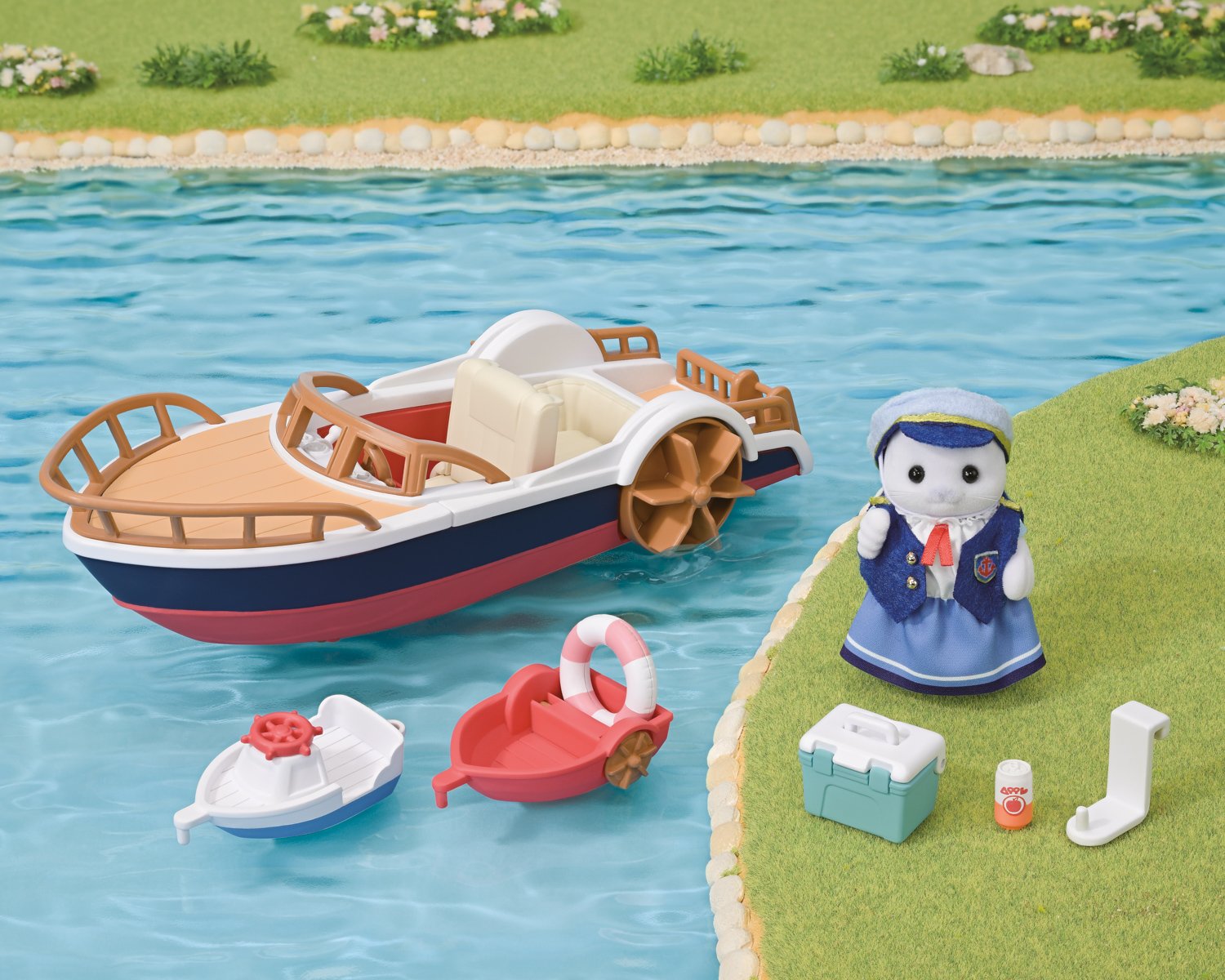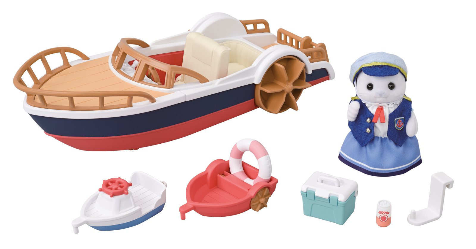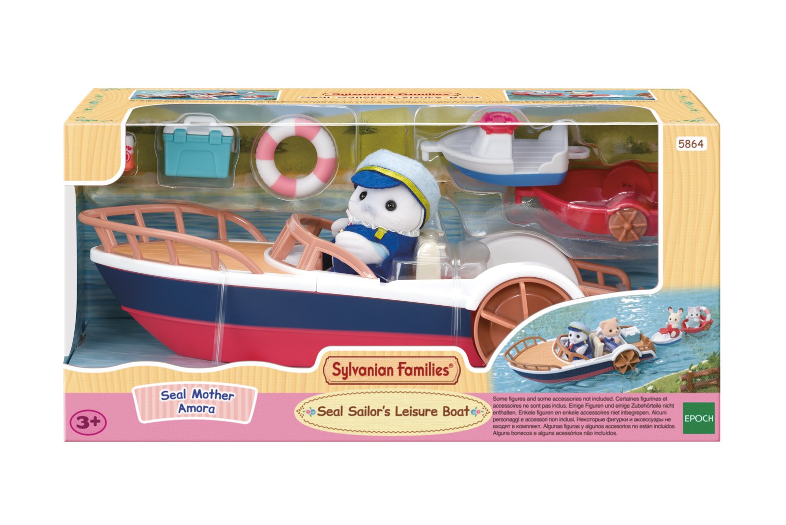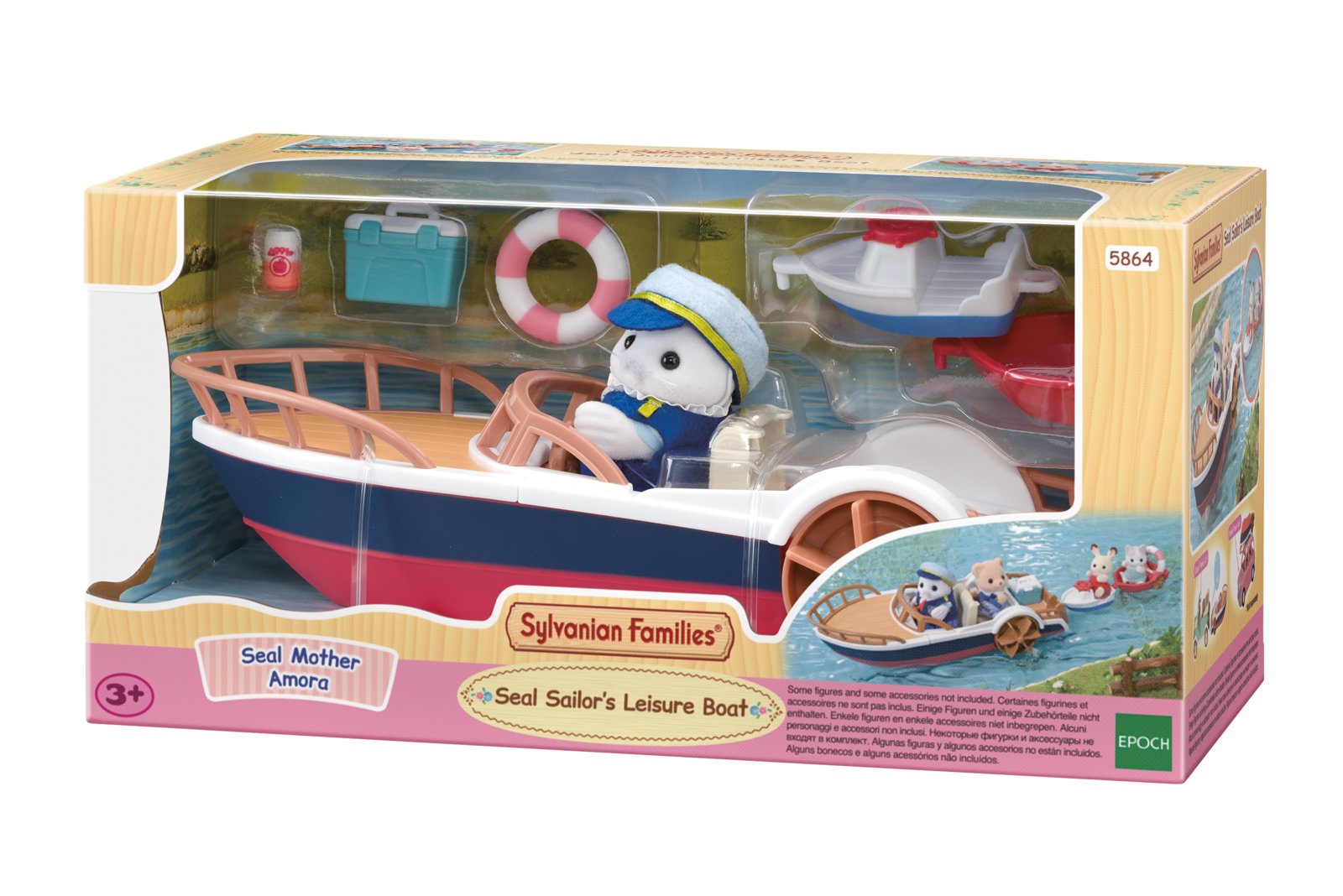 Výletní loďka s tulením námořníkem a příslušenstvím. Tato sada obsahuje figurku – tulení matku Amoru a její loď, která jí umožňuje plavit se po řece se svými přáteli. Součástí sady je ručně vyrobený námořnický kostým, záchranný kruh, chladicí box, plechovku džusu, spojovací dílek a dva malé čluny vhodné pro figurku miminka. Přední sedadlo lze odejmout a použít jako skluzavku. Malé čluny lze k hlavní lodi připojit pomocí spojovacího dílu. Loď pojme 2 postavičky – jednu vpředu a jednu vzadu. Velikost figurky cca 8 cm. Dokonale kompatibilní s dalšími zvířecími rodinami, domečky a příslušenstvím od Sylvanian Families. Hračky Sylvanian Families rozvíjejí představivost a povzbuzují děti k hraní rolí. Hra s figurkami rozvíjí kreativitu a učí emocím vytvářením a vyprávěním příběhů založených na každodenních zážitcích a pozorování světa. Hračky se vyznačují nejvyšší kvalitou a výjimečným důrazem na detaily. Figurky Sylvanian Families jsou pokryté měkkým semišem, mají pohyblivé končetiny a hlavu. Oblečení lze z figurek sundat a vyměnit za jiný outfit. Výletní loď lze také kombinovat s klasickým rodinným autem (5868) a rodinným růžovým autem Van (5535). Baleno v krabičce. Rozměry lodi: 7 x 11 x 25 cm. Rozměry balení: 13 x 27 x 13 cm. Věk: 3+