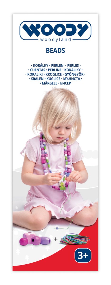 Tuba obsahuje velké množství klasických i soustružených korálků, korálků ve tvaru kytiček a tenké tkanice s koncovkou k provlékání. Vhodné pro rozvoj jemné motoriky. Praktické uzavíratelné balení na cesty. | Věk: 3+ | Rozměr: 6 x 15,5 cm |