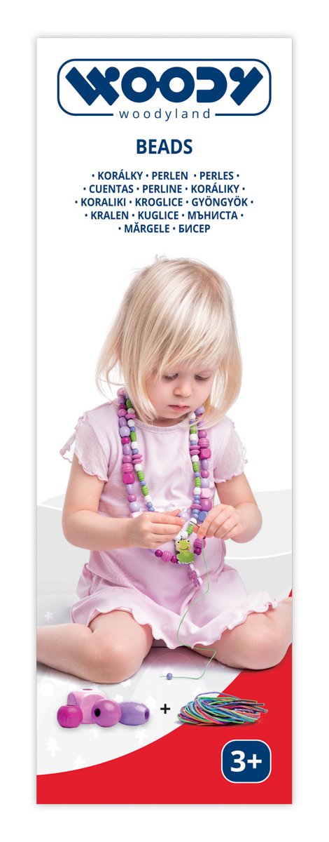 Tuba obsahuje velké množství klasických i soustružených korálků, korálků ve tvaru kytiček a tenké tkanice s koncovkou k provlékání. Vhodné pro rozvoj jemné motoriky. Praktické uzavíratelné balení na cesty. | Věk: 3+ | Rozměr: 6 x 15,5 cm |