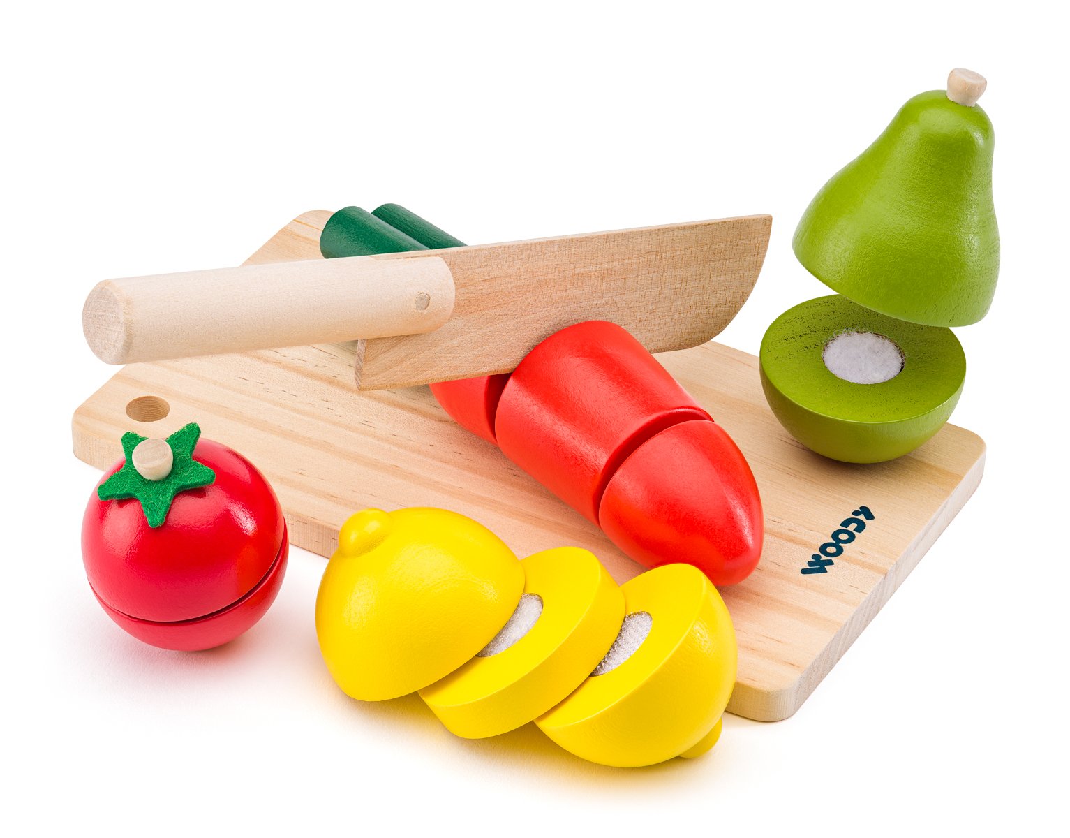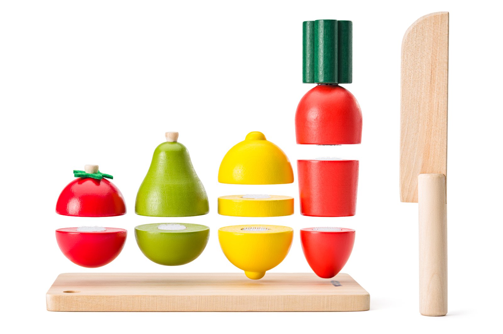 Věk: 3+ Rozměry: 19 x 10,5 x 6 cm Krájení na prkénku ´´Ovoce´´ je hračka vybavená suchými zipy, které umožňují skládat znovu a znovu ´´nakrájené´´ potraviny. Ideální hračka pro rozvoj motoriky a logického myšlení.