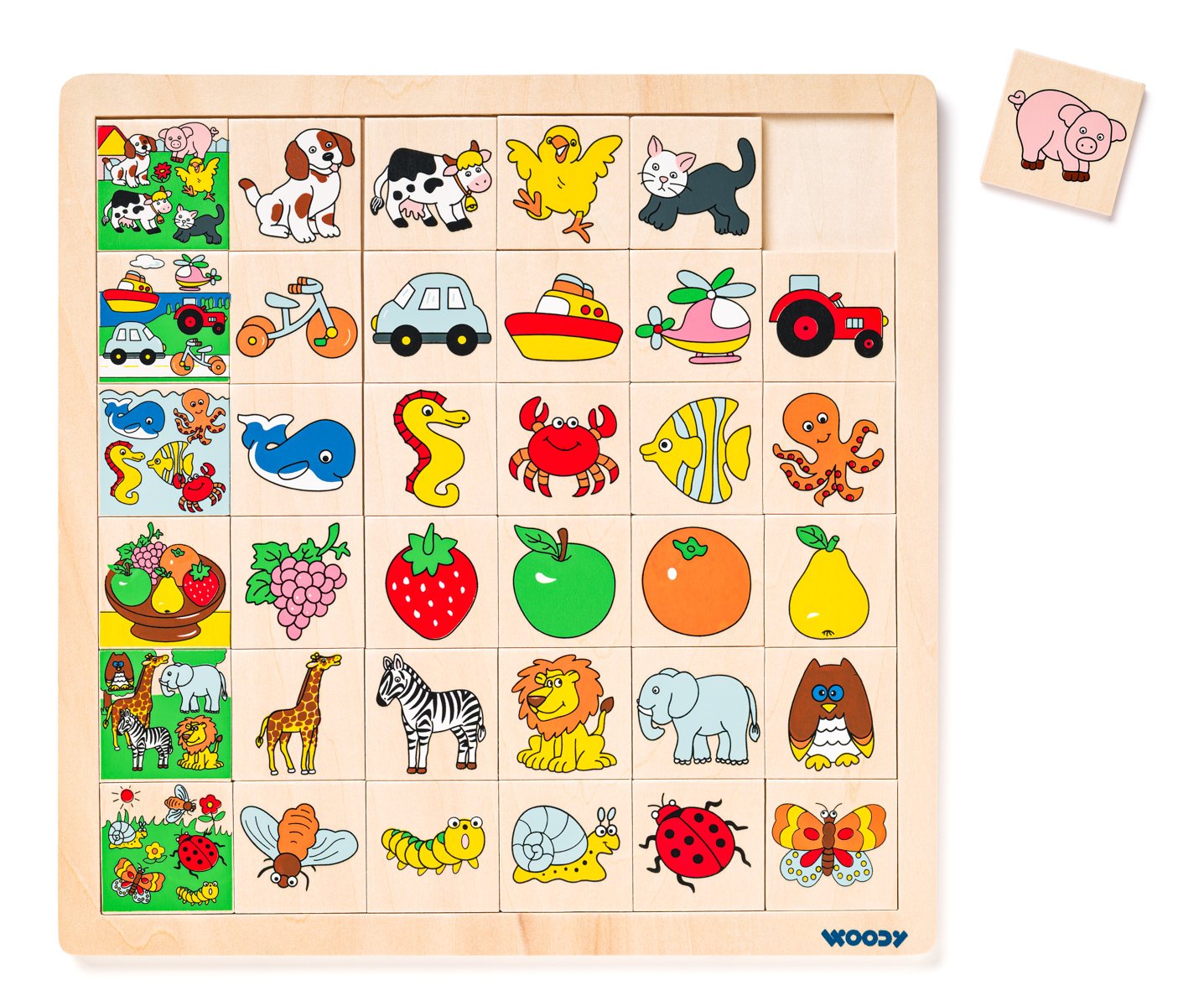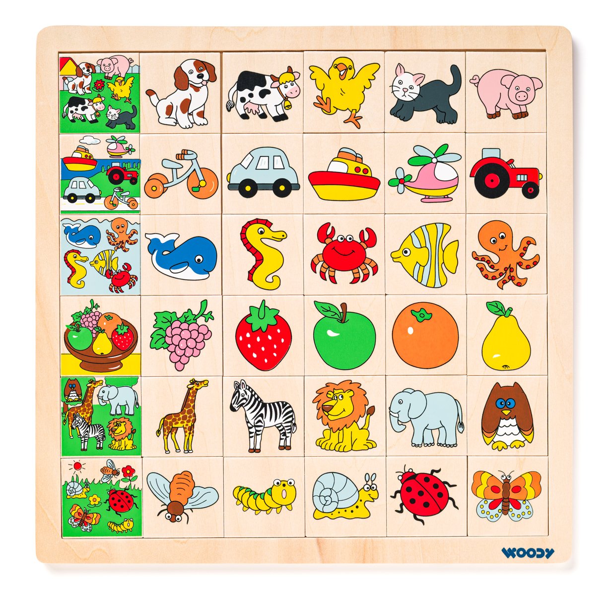 Věk: 3+ | Rozměr: 93006 | | Obrázková skládanka pomáhá dětem rozpoznávat a uvědomovat si předměty, které mohou vidět kolem sebe. Hra procvičuje jejich bystrost a schopnost soustředit se. Na začátek řádku patří vždy jeden hromadný obrázek. Dítě má za úkol přiřazovat do řádku jednotlivé samostatné obrázky, které tam dle obsahu náleží.