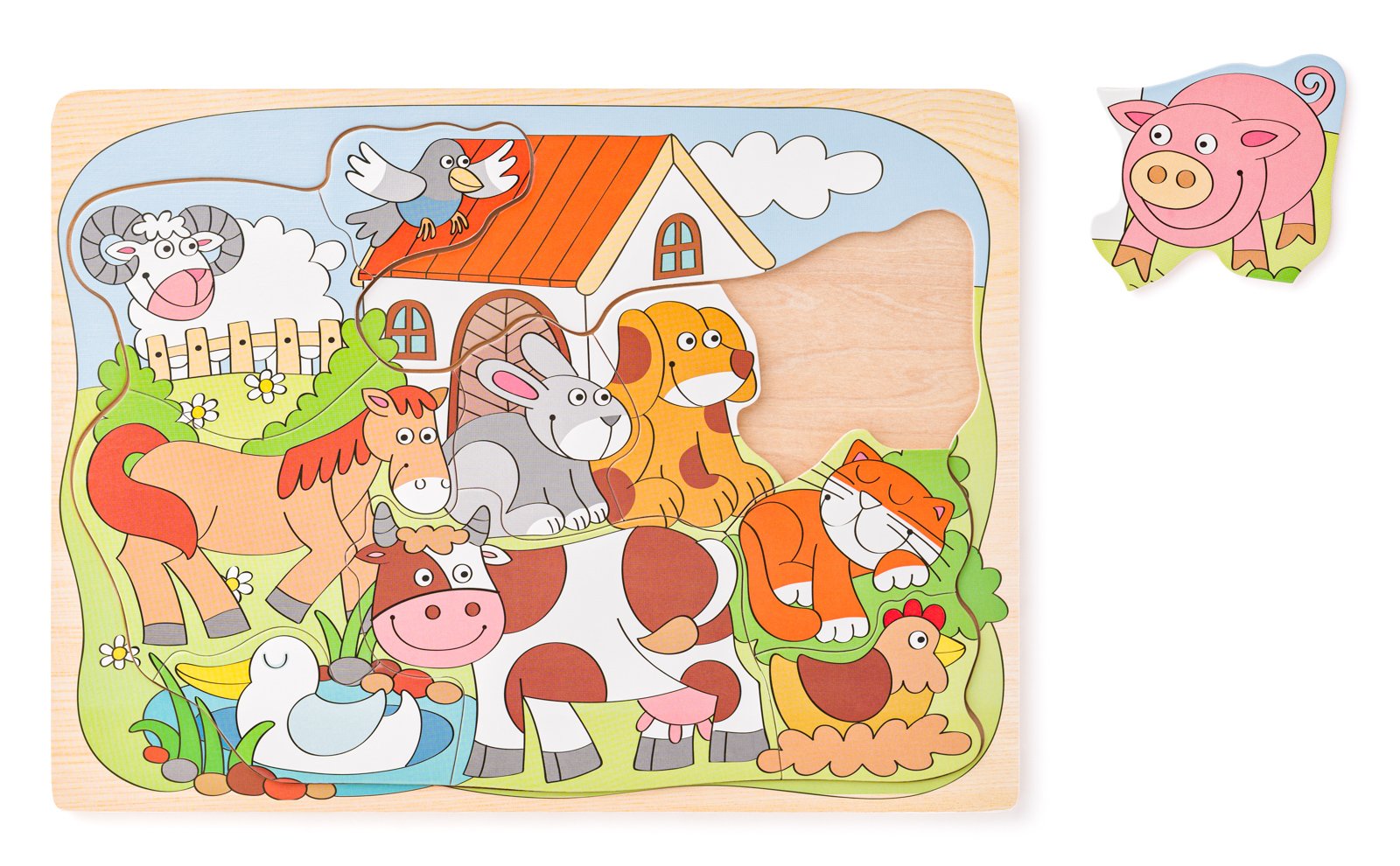 Puzzle je tvořeno skupinkou zvířat, která jsou od sebe oddělena výsekem. Při skládání je dítě skládá tak, aby znovu vytvořili jeden celek. | Věk: 3+ | Rozměr: 30x23cm |