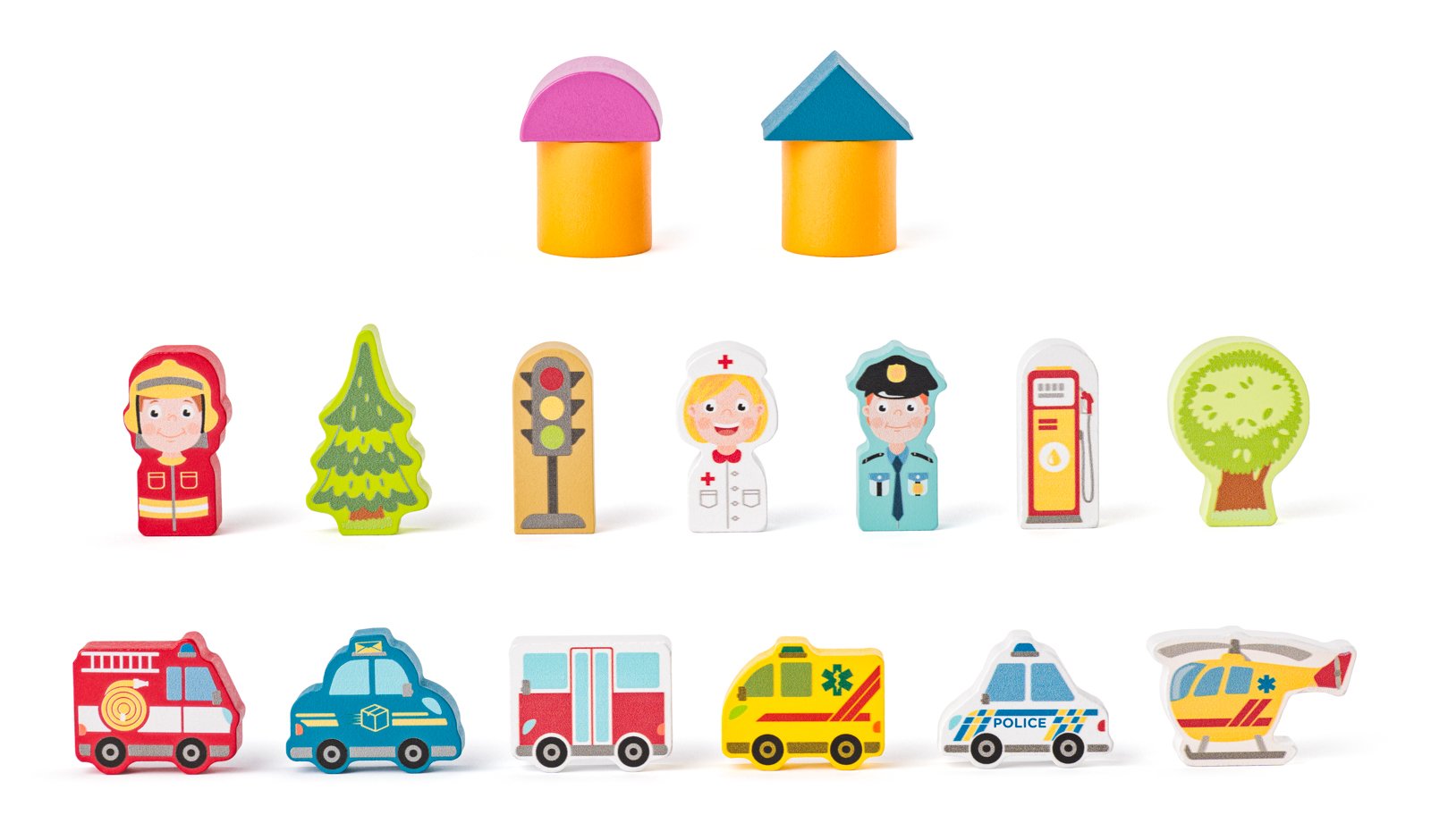Otevři kyblík plný barevných dřevěných kostek v jedinečném designu české výtvarnice a postav si vlastní město plné života! Vytvoř požární a policejní stanici, nemocnici, školu, kavárnu i obchod. Nech ulicemi projíždět auta, vrtulník kroužit nad městem a plnit své úkoly. Podkladová deska z puzzle dílů dotvoří dokonalou scénu pro tvé příběhy!| Věk: 3+ | Rozměr čtvercového dílu: 3x3x2 cm| Kyblík: 22,5 x 22 cm| Počet dílů: 115